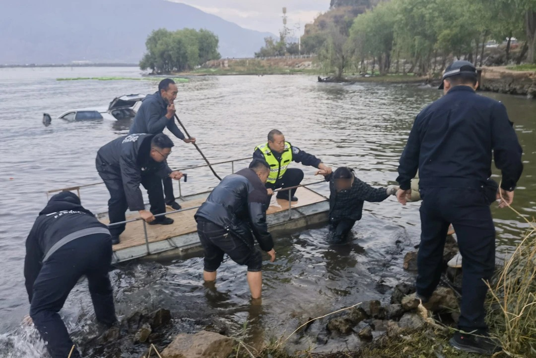 一车辆不慎坠入洱海,警方:司机已获救